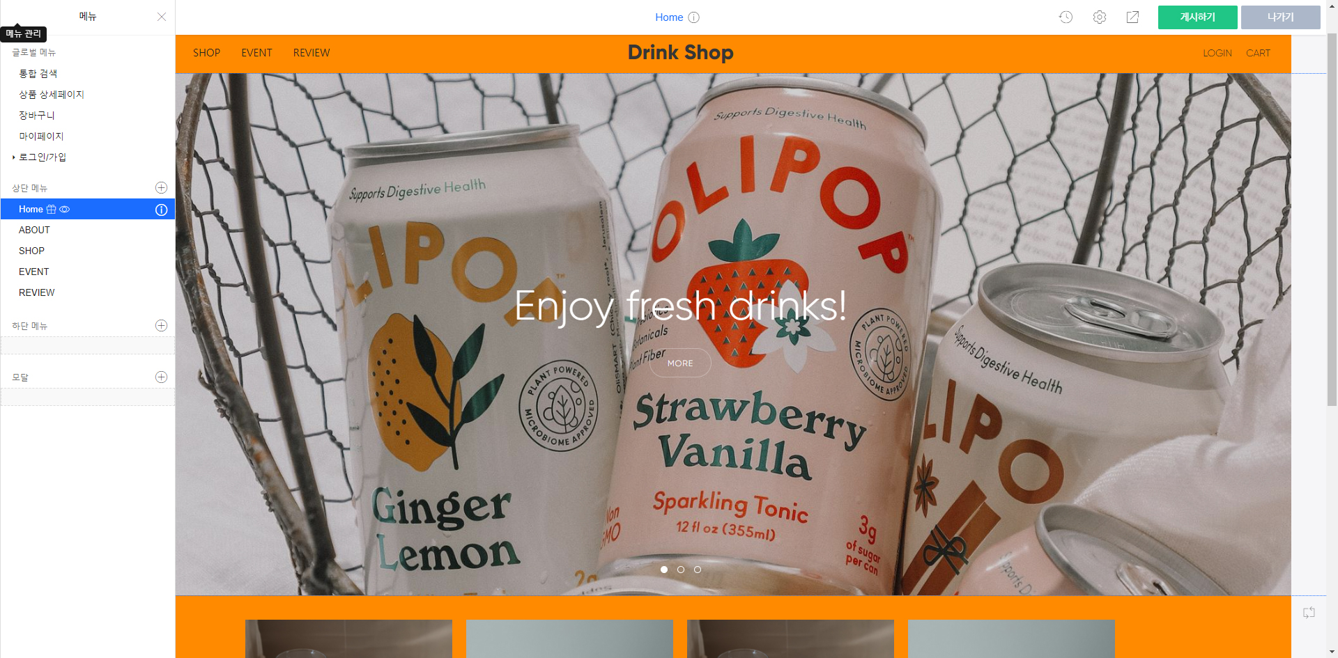 이번 3주차 홈페이지 수익화 강의에서는 쇼핑몰 만들기에 대해서 배웠습니다. 쇼핑몰은 기업이나 프렌차이즈 홈페이지보다 손도 많이 가고 뭔가 프로그램적인 요소도 필요했었는데요. 그래도 원하시는 자영업자 분들도 많이 계시고 지식창업을 하시는 분들도 쇼핑몰 홈페이지를 쓰신다고 하니 열심히 한번 만들어 보았습니다.